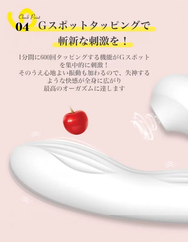 吸引だけでなく、内部を“トントン”と叩くようなタッピング機構があり、刺激のバリエーションが広い。 - 高速タッピング(1分間に600回程度)